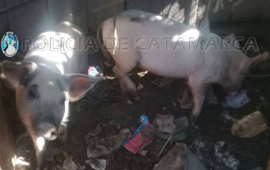 Al practicarles la requisa correspondientes, el personal interviniente encontró entre sus pertenencias una bolsa arpillera. Esta mañana, los policías materializaron una orden de allanamiento bajo las directivas de la Fiscalía de Instrucción N° 7, a cargo del Dr. Miguel Andrés Mauvecín, en un domicilio del Barrio Virgen del Valle de esta Ciudad Capital, propiedad de la familia Contreras, donde procedieron al secuestro de dos animales porcinos vivos, que estarían relacionados con el hecho investigado.