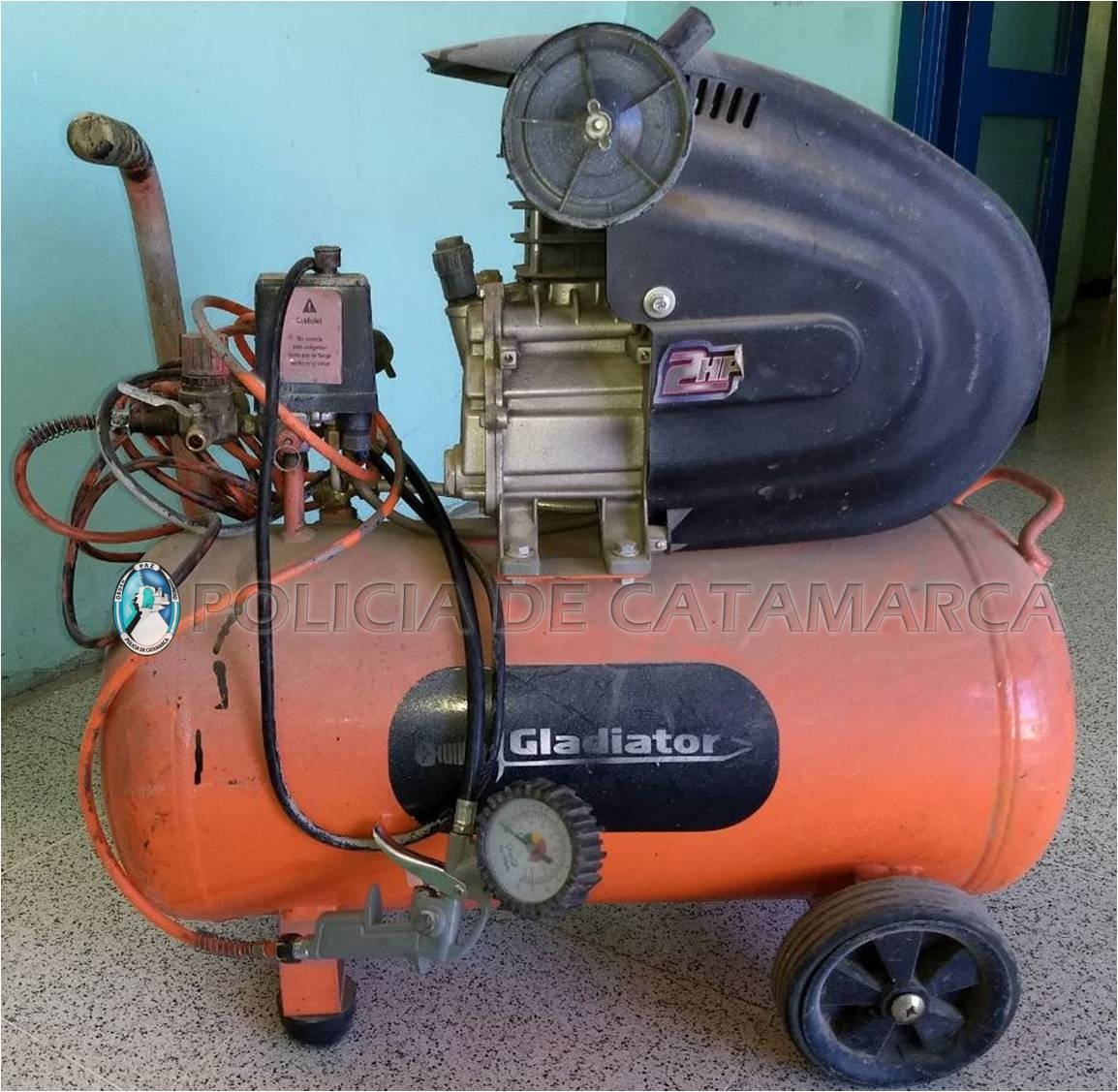 En el lugar, observaron a dos sujetos transportando un compresor gladiador 2 Hp, de color anaranjado, y al percatarse de la presencia policial, emprendieron la fuga abandonando el elemento en el lugar, por lo que quedó en calidad de secuestro hasta determinar su legítima propiedad y procedencia.