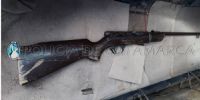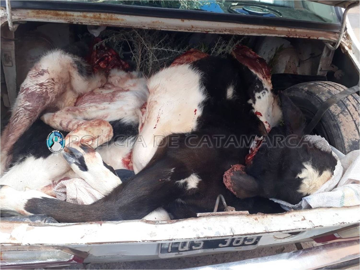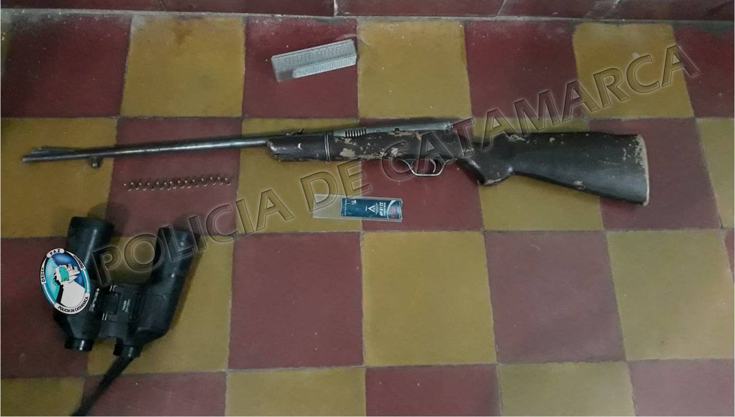 Al realizar la requisa correspondiente, el personal policial interviniente encontró en el interior del baúl del rodado dos animales vacunos faenados, una Carabina calibre 22, con 14 cartuchos del mismo calibre, dos cuchillas tipo carnicero y un par de binoculares, que quedaron en calidad de secuestro.