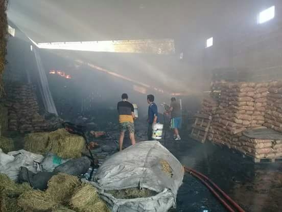 El incendio se originó en el sector donde está acopiado carbón a granel. En el depósito hay gran cantidad de fardos de alfalfa, cubiertas de vehículos, elementos de alta combustión.
