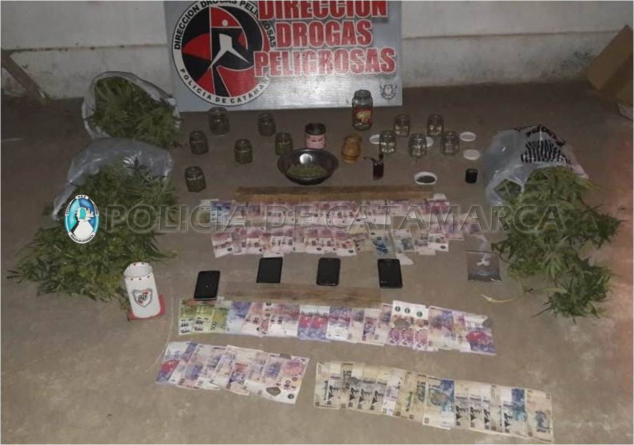 Tras irrumpir en un domicilio del Barrio 50 Viviendas Sur, propiedad de la familia Noriega, el personal policial interviniente secuestró 3 Kg. de picadura de Marihuana, con cogollos y flores, 4.000 semillas de la variedad Cannabis Sativa, cuatro teléfonos celulares, $10.000 en efectivo y once frascos de vidrio con restos de Marihuana.