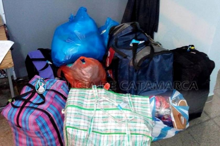 Tras inspeccionar el rodado, el personal policial interviniente procedió al secuestro de bultos que contenían 25 pañuelos, 26 pares de calzado, 39 camperas, 12 pares de medias finas, 30 juguetes varios, 18 remeras, 5 gorras, 50 termos, 6 set de cubiertos, 2 juegos de sábanas, 2 pavas eléctricas, 32 conjuntos de ropa interior femenina, 1 par de medias, 5 acolchados; todo de origen extranjero, valuados en unos $30.000), careciendo de la documentación correspondiente.