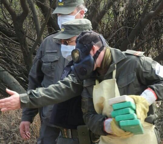 En las fotos se puede apreciar la última incineración de estupefacientes ordenada por la justicia.
