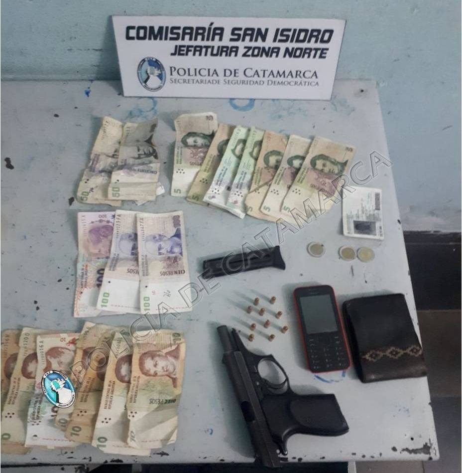 Tras reducirlo, los efectivos secuestraron una pistola marca Bersa, calibre 22, con diez cartuchos en el almacén cargador.