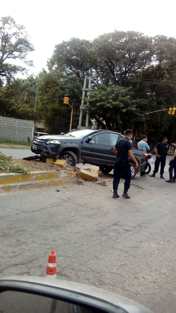 Por razones que se tratan de establecer, el conductor de una camioneta impactó contra el cantero que divide la ruta 38, a la altura de Cerámicas Valle Viejo.