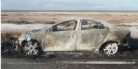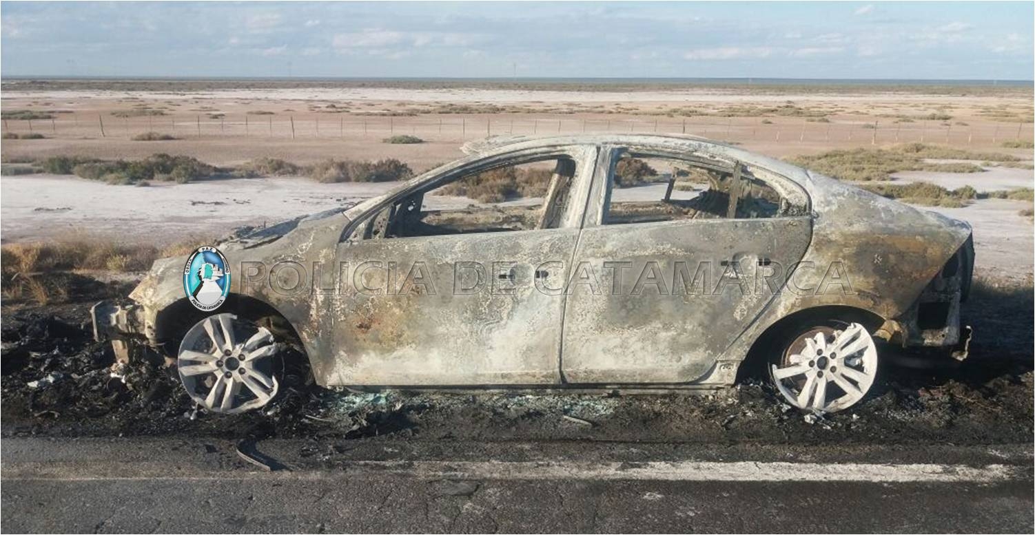 Rápidamente, llegaron al lugar y constataron que, por causas que se investigan, un automóvil Volvo S-60, dominio MDE-435, de color blanco, conducido por Carlos Emilio Moto (63), acompañado por Olga Beatriz Sanfilippo (63), oriundos de la provincia de Entre Ríos, estaba siendo consumido por las llamas.