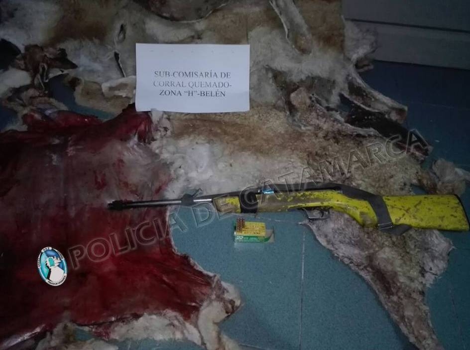 Luego, en horas de la tarde, los efectivos se constituyeron en un domicilio de La Ciénaga Redonda, propiedad de la familia Vargas, y lograron aprehender al joven y secuestrar otros cuatro cueros de vicuña, una carabina calibre 22 largo, marca Maheli, y 13 proyectiles punta hueca.