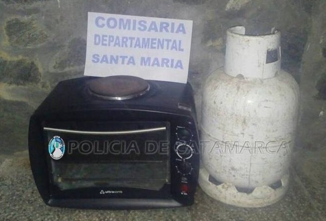 La detención se produjo como consecuencia de una denuncia penal radicada por un hombre de 37 años, quien manifestó que personas desconocidas habían ingresado el pasado viernes a su domicilio, ubicado en el Loteo Los Sauces de esa ciudad, y le sustrajeron un horno eléctrico negro, marca Ultracomb, y una garrafa de gas de 10 kg., de color blanco.