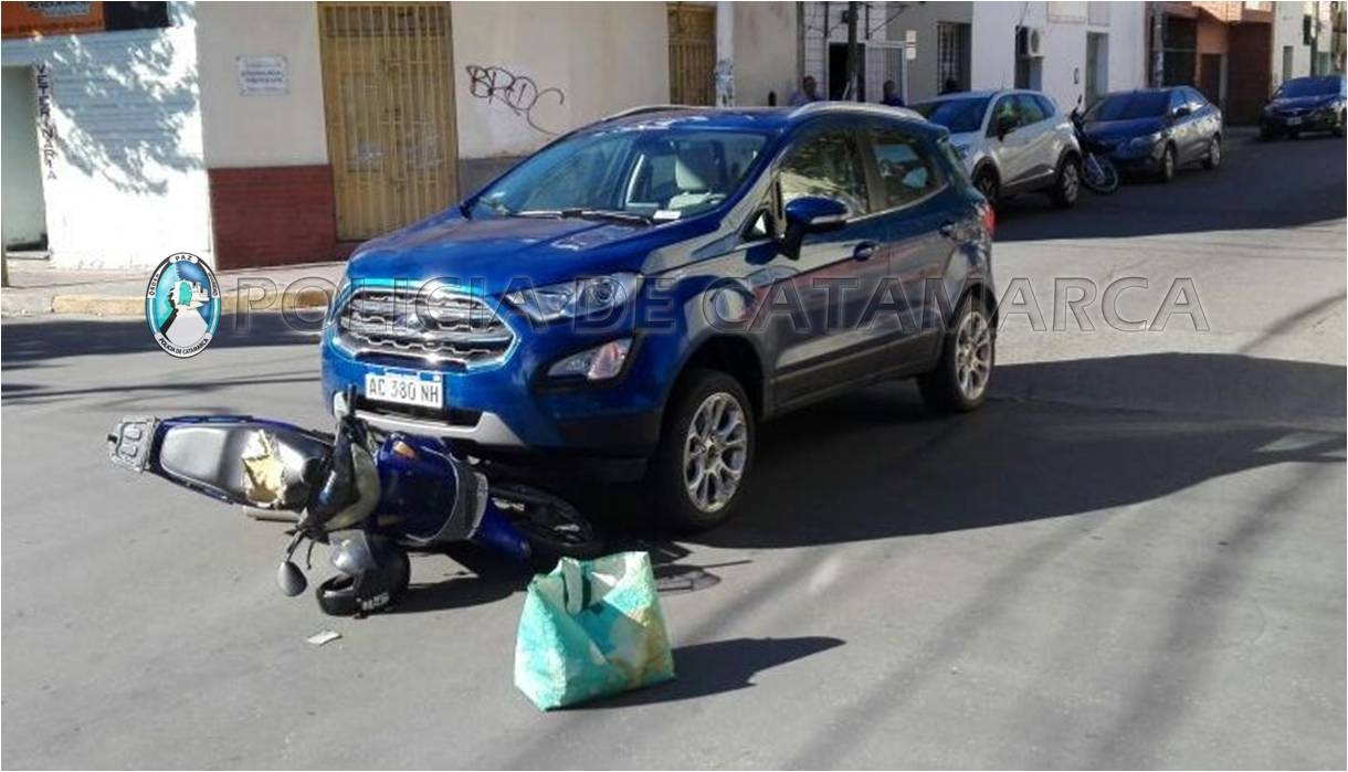 Graciela Bracamonte (59) circulaba en una motocicleta Motomel DLx 110 cc., de color azul, dominio 819-DHP, y por causas que se tratan de establecer colisionó con una camioneta Ford EcoSport azul, AC-380-NH, al mando de Jorge del Valle Barrionuevo (59).