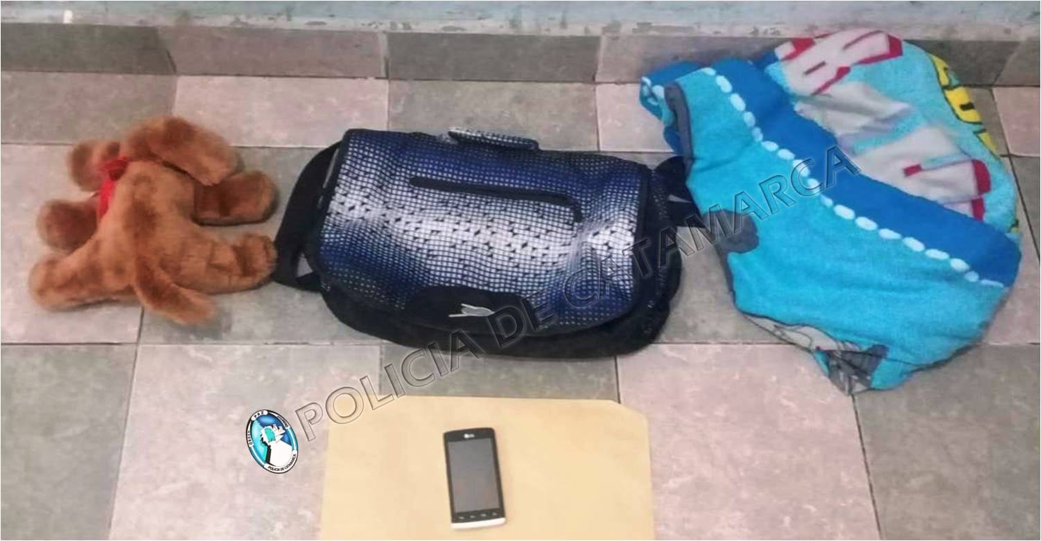 En el lugar, procedieron a la aprehensión de un joven de apellido Córdoba, de 20 años, quien habría sido sorprendido cuando llevaba un bolso marca Stone, de color negro, una frazada, un oso de peluche de color marrón y un teléfono celular marca LG, de colores negro y blanco.