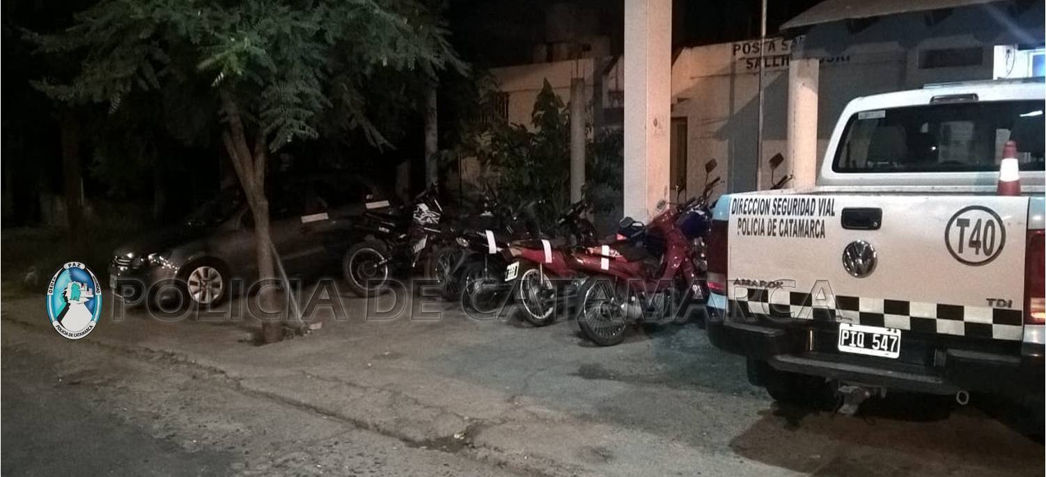 En los puestos camineros Las Rejas de la Capital, El Portezuelo y Sumalao, Valle Viejo y Nueva Coneta, Capayán, secuestraron 17 motocicletas de distintas marcas y cilindradas y nueve automóviles, que fueron remitidos a los Corralones Municipales respectivos, en virtud que sus conductores infringieran las disposiciones de la Ley Nacional de Tránsito Nº 24.449.