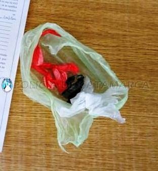 Cabe señalar que se dio intervención al personal de la Dirección Drogas Peligrosas de la Policía de la Provincia, en virtud de haber encontrado durante la inspección cuatro envoltorios de nylon que contenían una sustancia de color blanco, que luego de ser sometida a la prueba de campo lograron establecer que se trataba de una escasa cantidad de Cocaína, que también quedó a disposición de la Justicia interviniente.