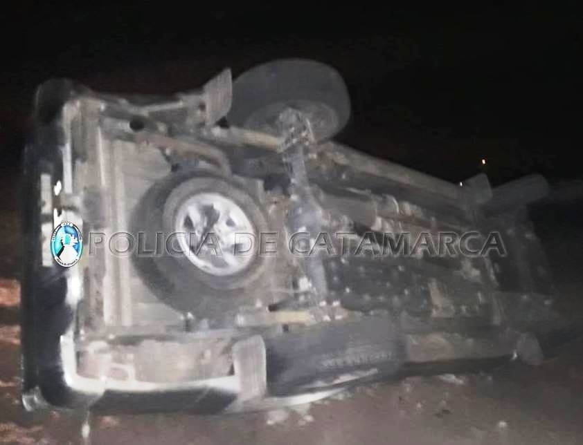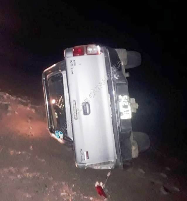 En el lugar, una camioneta Toyota Hilux, dominio OTY-275, de color gris, conducida por Diego Ramón Araya (21), acompañado por Walter Fabián Sandon (18), por causas que se tratan de establecer, terminó volcando a un costado del camino.