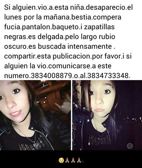 A través de las redes sociales, sus familiares y amigos solicitan a quien sepa sobre sus paraderos o los haya visto, avisar de inmediato a la policía.