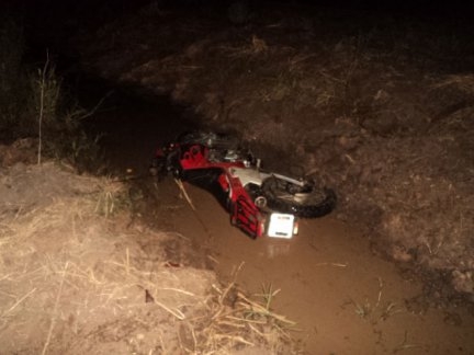 Mercedes Gramajo (49), circulaba en una motocicleta Zanella azul 110 cc., dominio 139-HQX, y por motivos que se tratan de establecer, perdió el control del rodado y cayó a la cinta asfáltica.