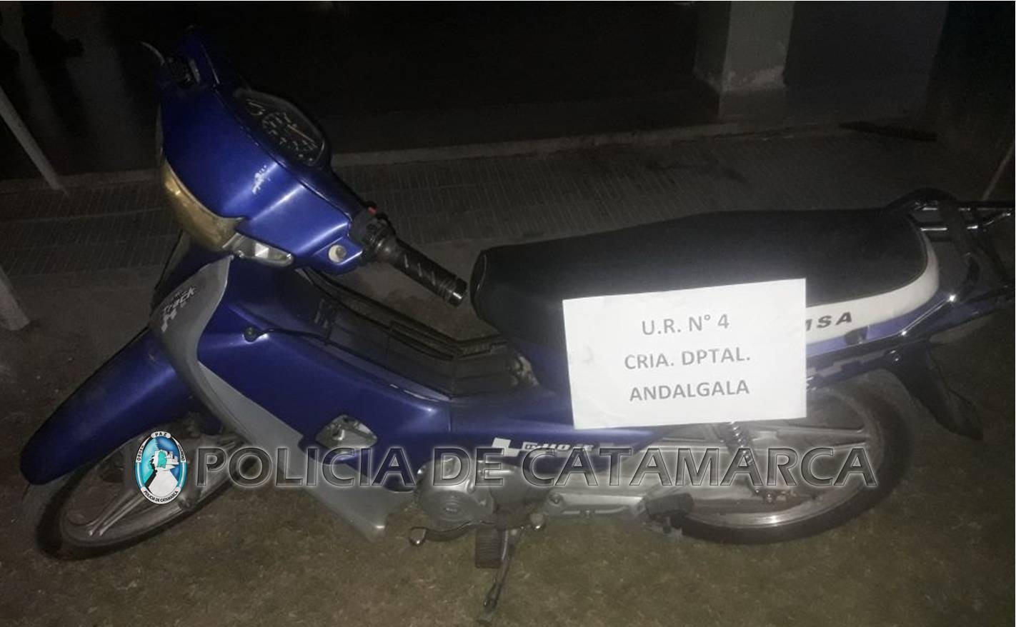 El pasado domingo, en horas de la mañana, personal de la Comisaría Departamental Andalgalá tomó conocimiento que del interior de un domicilio ubicado en el barrio San Francisco de esa ciudad, personas desconocidas habrían sustraído una motocicleta Honda Wave 110 cc., de color azul, propiedad de un hombre de 35 años.