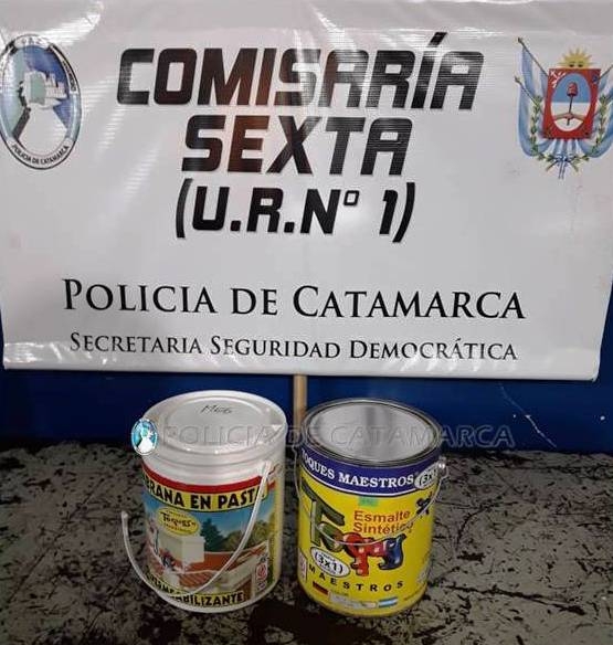 En la huida, dejaron abandonados en el lugar un tacho de pintura sintética de 4 litros y un tacho de membrana líquida de 4 litros, ambos marca “Toques”, que quedaron en calidad de secuestro hasta determinar su legítima propiedad y procedencia.