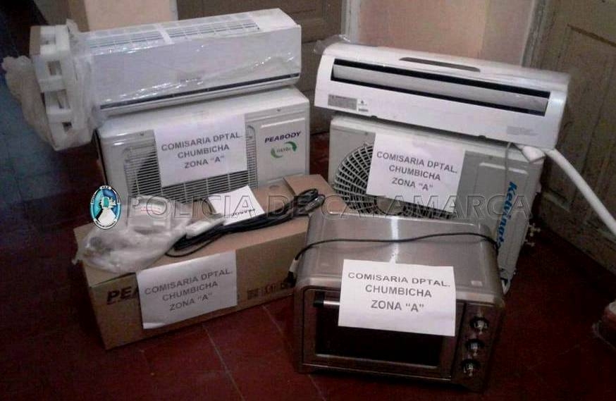 En un domicilio ubicado en el barrio 54 viviendas, propiedad de la familia Reartes, el personal interviniente procedió al secuestro del electrodoméstico denunciado, como así también de un horno eléctrico marca Peabody, de color gris, y otro aire acondicionado Peabody blanco, que estarían relacionados con otros ilícitos perpetrados en la zona.