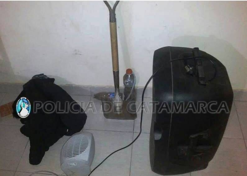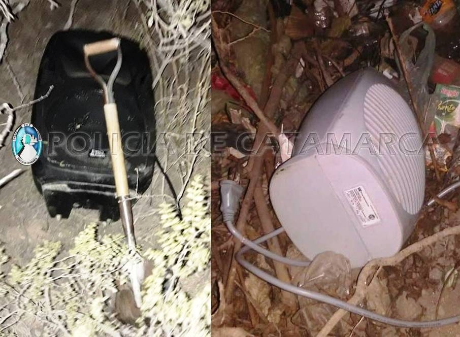 El personal policial interviniente realizó un rastrillaje en un descampado de la zona donde encontró oculto entre la maleza un parlante marca Probass de color negro, un caloventor Philco blanco, una campera negra y una pala cuadrada, que estarían relacionados con el ilícito.