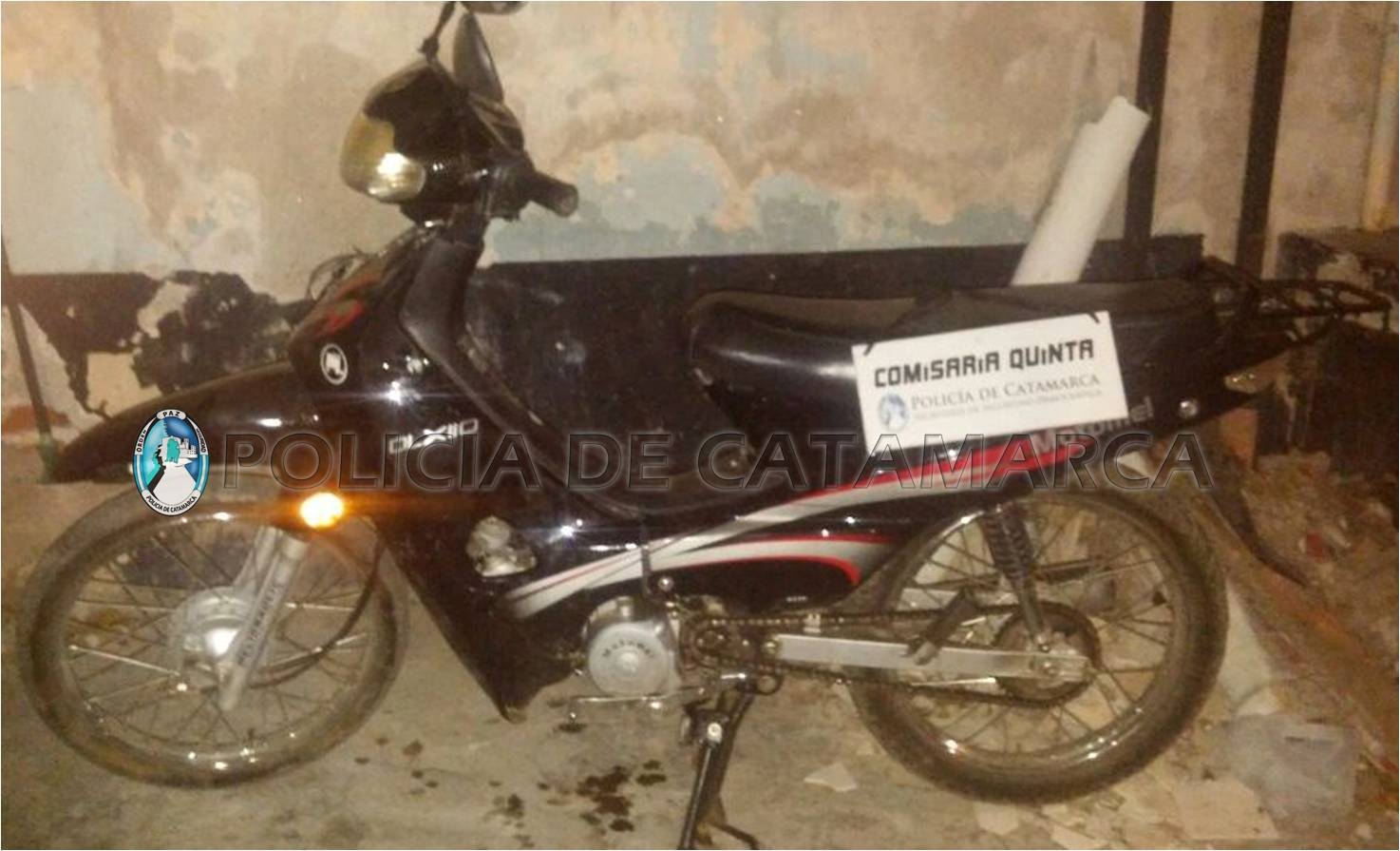El personal policial procedió al secuestro de una motocicleta Motomel DLX 110 cc., de color negro, que estaba oculta entre la maleza de un descampado ubicado en la Avenida Güemes Oeste, inmediaciones a la ripiera.