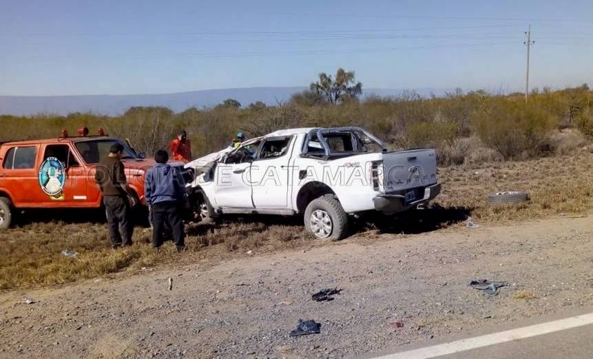 En el lugar, una camioneta Ford Ranger blanca, doble cabina, dominio MGH-377, en la que circulaba Sabrina González (19), en compañía de José Nicolás Corzo (62), oriundos de la provincia de La Rioja, por razones que se tratan de establecer, terminó volcando a un costado de la banquina.