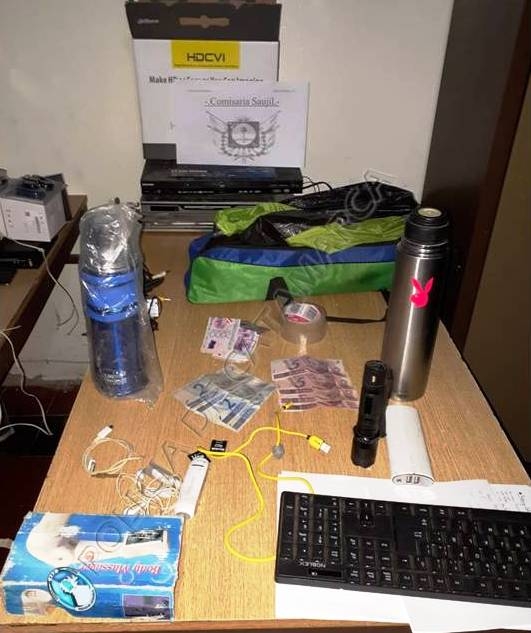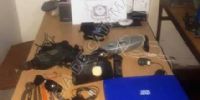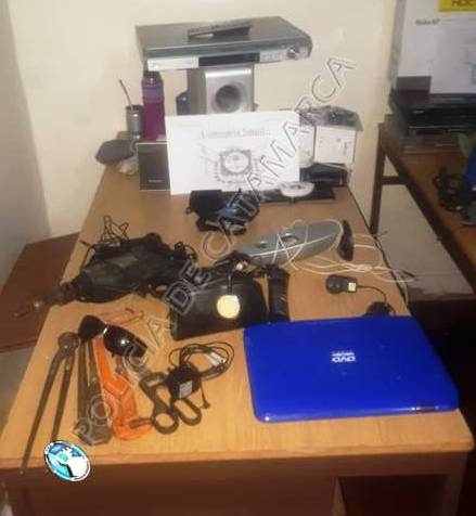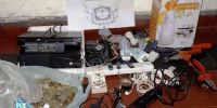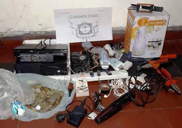 En un domicilio ubicado en el barrio San Cayetano, propiedad de una familia de apellido Madrigal, el personal interviniente procedió al secuestro de tres cámaras digitales marcas Sony, Lumix y Sanyo, un teléfono celular Samsung pocket negro, cuatro reproductores de DVD marcas Keyton, Coven, y Ranser, un equipo de sonido, cuatro pendrive, una planchita para el pelo GAMA, dos depiladoras Brawn, una carpa para acampar, un tensiómetro, un aromatizador de ambiente, un reproductor de DVD portátil Knup, un taladro Bosch, una máquina de cortar el pelo, una pinza multifunción, un par de auriculares marca Samsung, dos termos, una linterna negra, un teclado de computadora, varios cargadores de celulares, tarjetas de memoria, un cargador portátil, 34 reales, 4 mil paraguayos y 400 pesos en monedas, y varias herramientas.