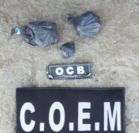Al momento de la requisa, la policía encontró entre sus prendas de vestir tres envoltorios de nylon, que contenían 49 Gr. de Marihuana, conforme a la prueba de campo realizada por personal de la Dirección Drogas Peligrosas de la Policía de la Provincia, que fueron convocados al lugar, y dieron intervención al Juzgado Federal, desde donde se indicaron las medidas a seguir.