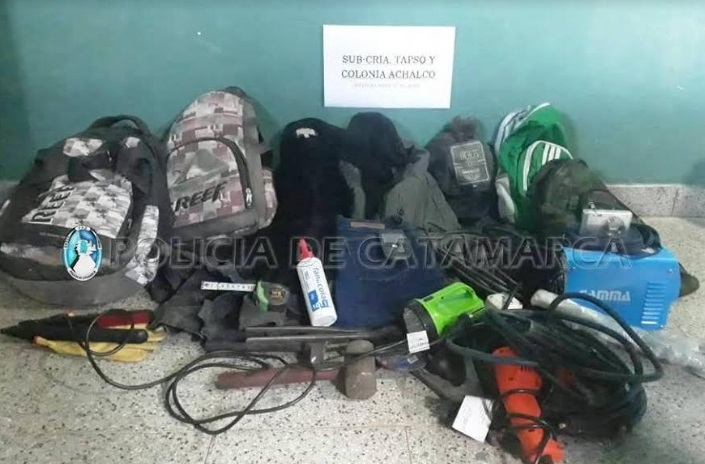 En el lugar, los policías recuperaron tres (03) camperas marca Taverniti, un (01) jeans de dama, cuatro (04) mochilas, tres (03) pendrive, tres (03) teléfonos celulares, una (01) planchita para el cabello, una (01) cámara digital, una (01) máquina de soldar Gamma, un (01) taladro de mano, una (01) amoladora, una (01) remachadora, un (01) prolongador de corriente de 10 metros, dos (02) mazas, dos (02) cintas métricas, una (01) tenaza, un (01) cortafierro, una (01) linterna LED recargable, un (01) rollo de alambre, un (01) par de guantes, dos (02) discos para amoladora y500 gramos de electrodos, que estarían relacionados con el hecho investigado, por lo que quedaron en calidad de secuestro a disposición de la justicia interviniente, desde donde se dispuso que los moradores queden supeditados a la prosecución de la causa.