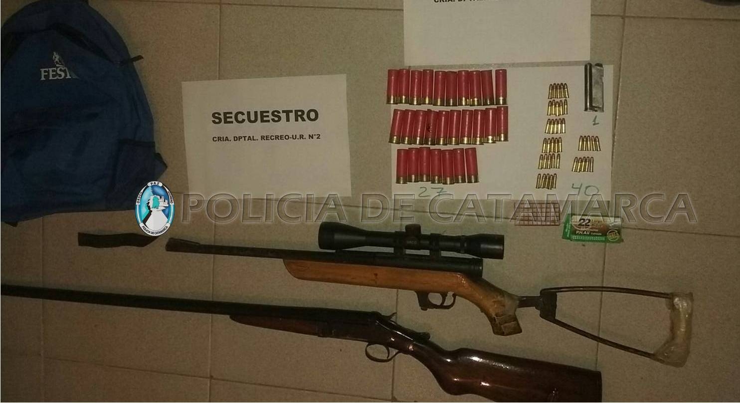 En la oportunidad, secuestraron una escopeta calibre 16, una carabina Mahely ST 700, calibre 22, 27 cartuchos calibre 16, un cargador de pistola y 40 cartuchos calibre 22 mm., que personal de Gendarmería Nacional encontró al inspeccionar una camioneta Peugeot 504 y una Ford Ranger, durante un control vehicular llevado a cabo en la ruta provincial Nº 20, a la altura del ingreso a la localidad de Esquiú, La Paz.