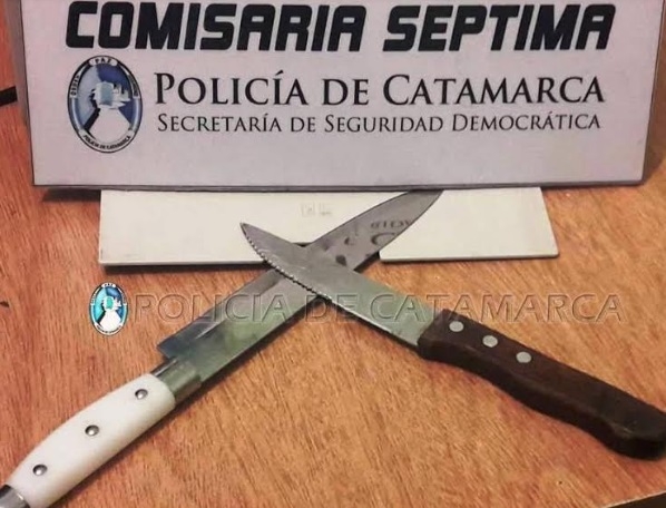 En el lugar, los policías procedieron a la aprehensión de un hombre de 43 años, quien habría ingresado al interior de la vivienda, propiedad de una mujer de 62 años, tornándose violento con los moradores, al igual que con el personal policial interviniente, a quienes los amenazó con dos cuchillas tipo carnicero.