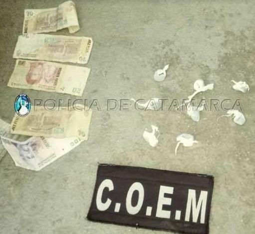 Al momento de realizarle la requisa correspondiente, los policías encontraron entre sus prendas de vestir la suma de $150 en efectivo y 9 envoltorios de nylon con una sustancia tipo herbácea.