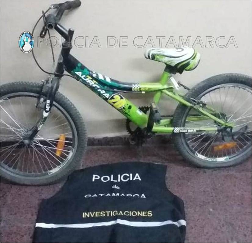 Del lugar, le sustrajeran una bicicleta rodado 20, de color negro con verde. Luego de llevar a cabo tareas de su especialidad, personal de la División Investigaciones de la Policía de la Provincia materializó un registro domiciliario ordenado por la Fiscalía de Instrucción Nº 6, a cargo del Dr. Marcelo Hadel Sago.