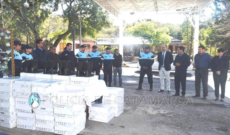 En la oportunidad, el Secretario de Seguridad Democrática, Marcos Denett, junto al Jefe de Policía de la Provincia, Orlando Antonio Quevedo, a la Subjefe de Policía, Ana del Valle Garay, al Director de Planes de Seguridad, Manuel Américo Aybar, a integrantes de la Plana Mayor Policial, y al Jefe de la Unidad Regional Nº 1, Félix Marcos Salazar, entregaron cinco motocicletas marca Honda XR 150 cc., tipo enduro, con su respectivo casco protector, 60 pares de botas y 6 linternas, con sus respectivos porta linternas.