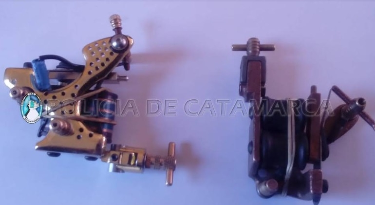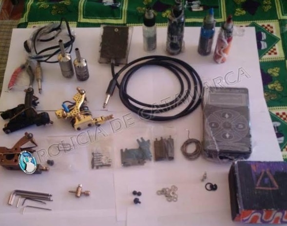 En el lugar, secuestraron 3 maquinas eléctricas para realizar tatuajes de diferentes características, 2 tubos de acero inoxidable, 4 tubos con tintas de varios colores, y 1 bolsa de nylon conteniendo en el interior láminas de metal de color negro, que quedaron en calidad de secuestro.