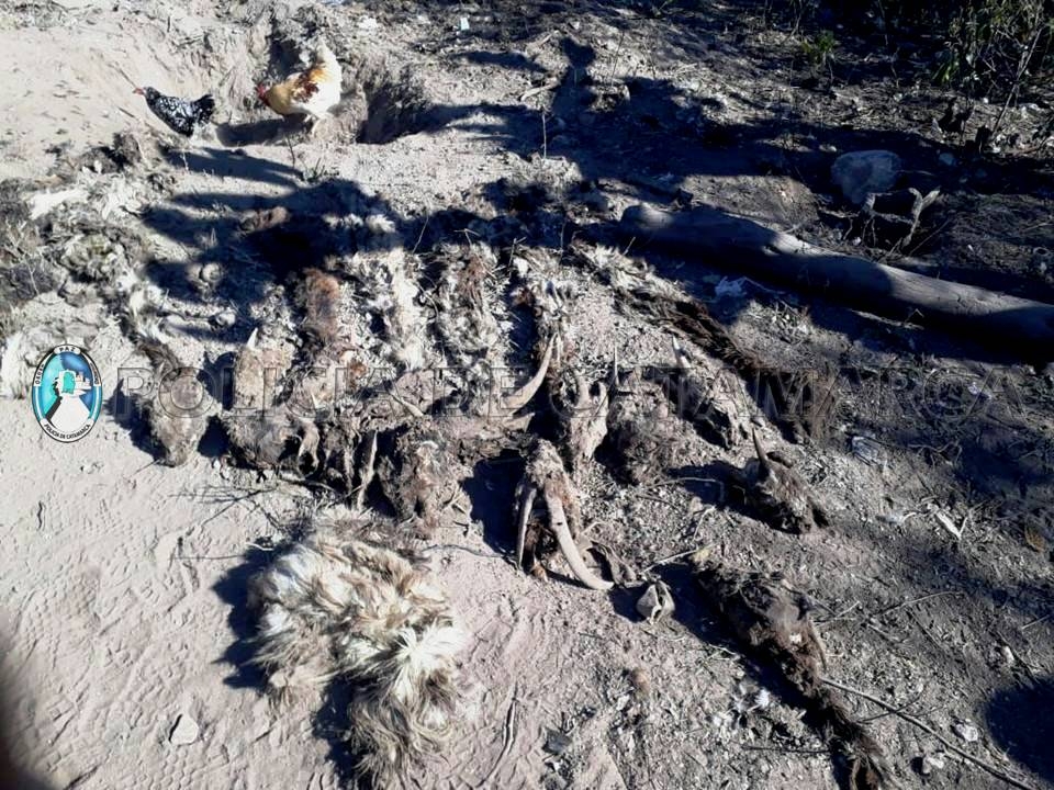 El pasado domingo 10, a las 14, a raíz de una ardua tarea investigativa, personal de la Subcomisaría de Colonia de Achalco, conjuntamente con sus pares de la Subcomisaría de Tapso, bajo las directivas de la Fiscalía de Instrucción Nº 1, a cargo del Dr. Víctor Figueroa, materializaron dos registros domiciliarios en el Paraje Choya Viejo, propiedad de las familias Molina y Villarreal respectivamente, donde los policías lograron establecer que los animales habrían sido faenados y comercializados.