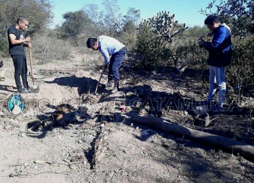 Luego de cavar pozos, los policías encontraron ocultos 47 cabezas y cueros caprinos que quedaron en calidad de secuestro, y al finalizar las medidas Judiciales, el personal interviniente aprehendió a dos jóvenes de apellidos Villarreal, de 26 y 27 años, y a tres hombres de apellidos Guerra (52), Molina (53) y Guerra (53), sobre quienes pesaba un pedido de detención ordenado por la Justicia interviniente, por el supuesto delito de abigeato agravado en calidad de coautores.