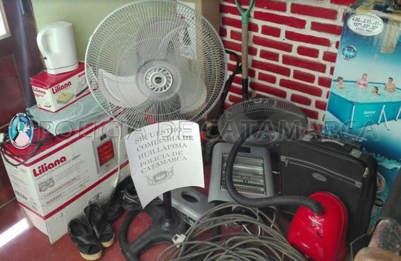 En el lugar, los policías lograron secuestraon una estufa alógena, una plancha, un árbol de navidad, una pala de punta, una bordeadora de césped, una pileta pelopincho, una maleta, dos ventiladores de pie, una aspiradora, dos pares de calzado, un paraguas, un prolongador de corriente, un colchón inflable, dos garrafas de gas de 10 kg., una olla, un sartén, un termo, un colador de fideos y una flanera, que quedaron en calidad de secuestro.