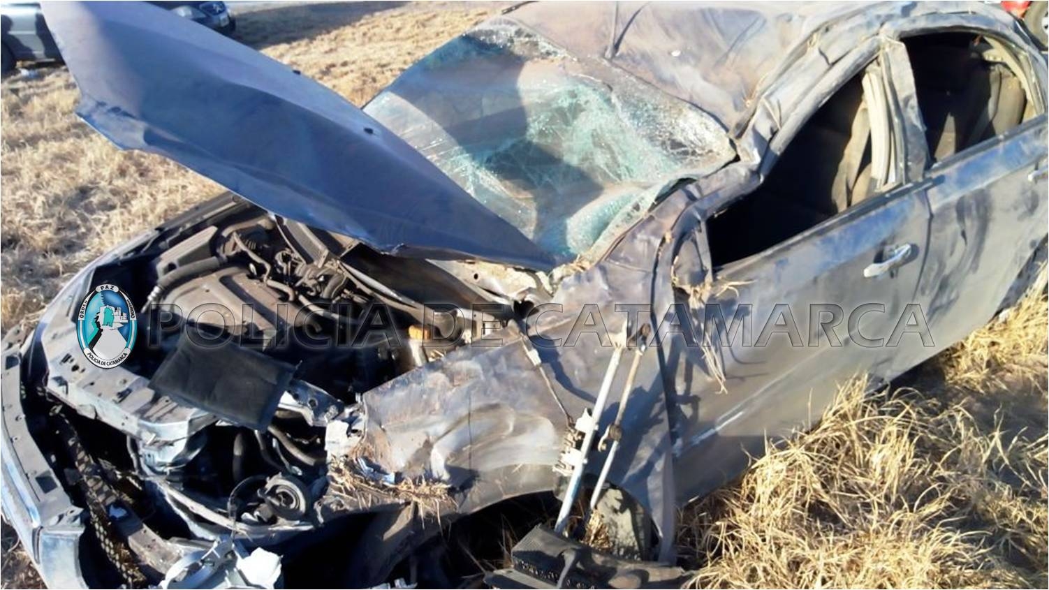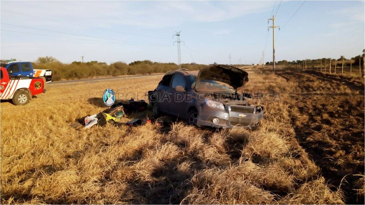 El accidente fue protagonizado por un automóvil Chevrolet Classic azul, dominio OGM-165, en el que circulaba Tomas Bolaños (22), en compañía de José Ignacio De Riso (19) y Camila Villavicencio (19) oriundos de la provincia de Buenos Aires, y por razones que son materia de investigación, terminó volcando a un costado de la banquina.