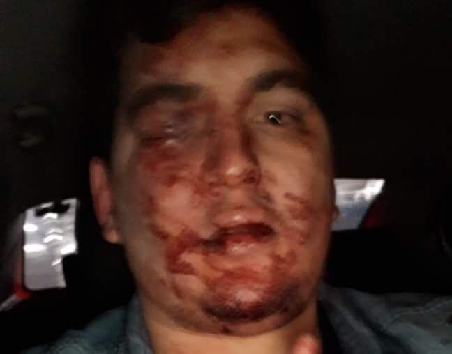 “Yo estaba sentado con tres chicas y pasó un grupo de chicos. Una pareja que iba con ellos iba discutiendo y nosotros miramos para ver si pasaba algo más, y en eso justo se da vuelta un chico, y me empezó a tirar la bronca a mí. Yo atiné a contestar, como cualquier otro, y el chico se acerca a seguir prepoteándome y me empezó a pegar, yo me defendí y también le empecé a pegar. Ahí se me vinieron dos, supongo en el afán de defenderlo”, relató el joven que sufrió importantes heridas en su rostro.