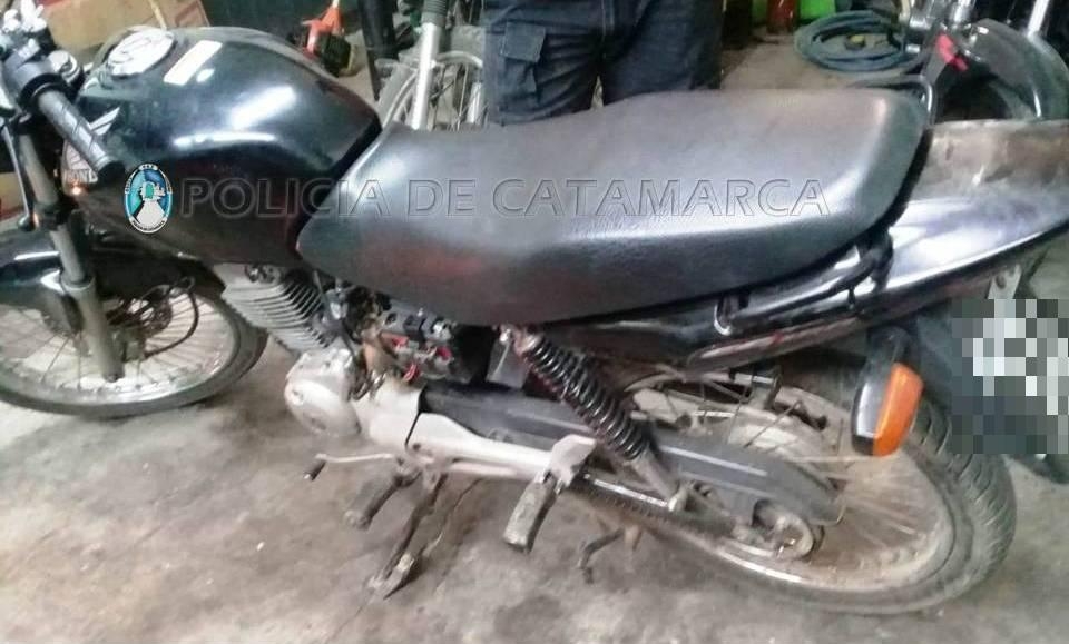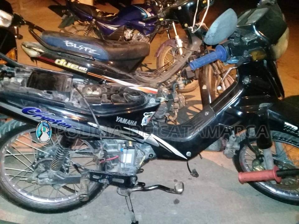 Más tarde, a las 20, en un taller mecánico ubicado en la calle Luis de Medina S/N, de la localidad de San Isidro, Valle Viejo, propiedad de una familia de apellido Coronel, secuestraron una motocicleta Honda CG Titán 150 cc., dominio 221-ICB, de color negro, sobre la cual obraba un requerimiento de la Unidad Judicial Nº 3, de fecha 21 de febrero del año 2017, por la sustracción de la misma, y una Yamaha Crypton 110 cc., dominio 142-HHH, de color negro, que tenía la numeración del motor adulterada.