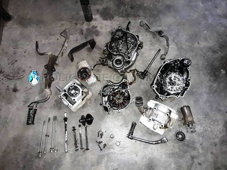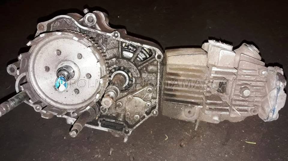 En un local ubicado en la ruta provincial N° 1, de la localidad de La Carrera, Fray Mamerto Esquiú, propiedad de la familia Agüero, los policías procedieron al secuestro de un motor de Motocicleta 110 cc., con la numeración adulterada.