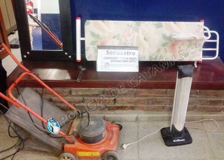En el lugar, procedieron a la aprehensión de un joven de 20 años, de apellido Herrera, y a la demora de dos adolescentes de 15 y 16 años, quienes habrían sido sorprendidos cuando intentaban sustraer una cortadora de césped marca Motormech, de color naranja, un espejo tamaño grande con marco de color negro, una mesa de planchar plegable blanca, una estufa de color blanco marca Liliana y una llave francesa, del interior de un domicilio ubicado en el lugar, que estaba sin moradores.