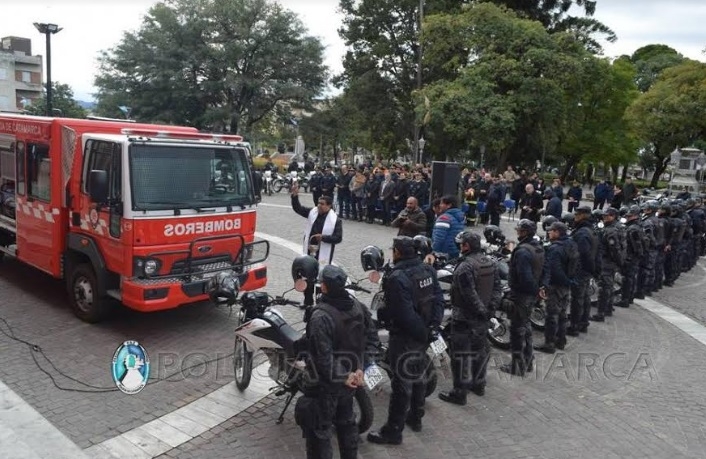 El Capellán Policial, Of. Inspector Pbro. Humberto Carrizo, invocando la protección de Dios, bendijo los vehículos y elementos que serán utilizados a partir de hoy para el cumplimiento de la labor como funcionarios del orden y la seguridad.