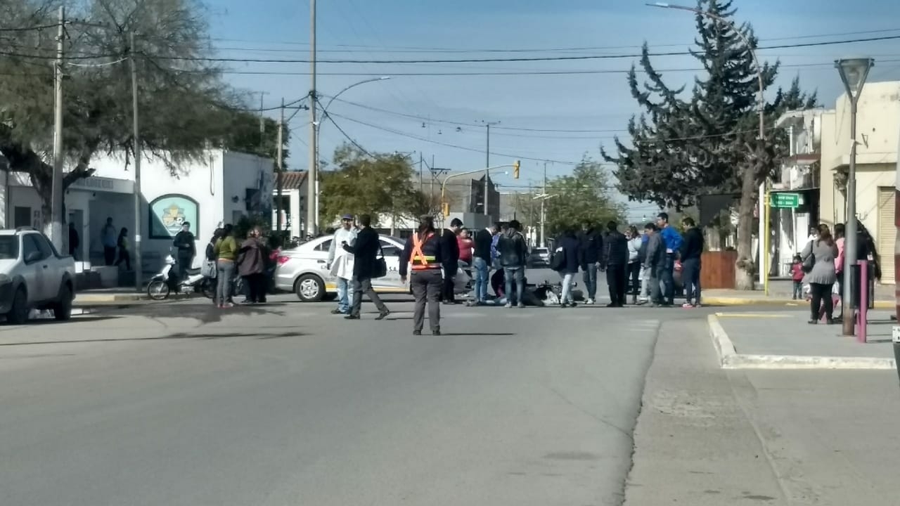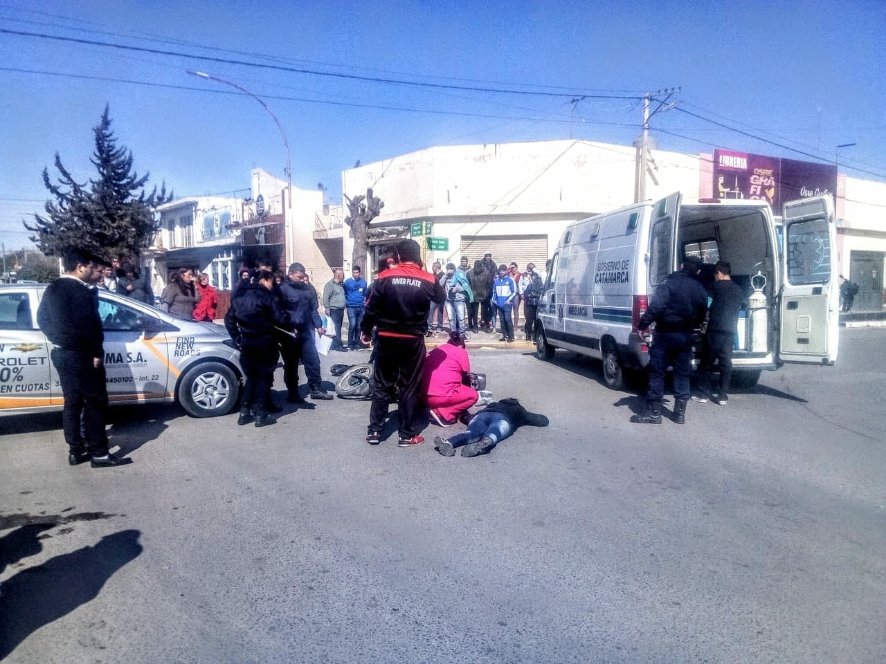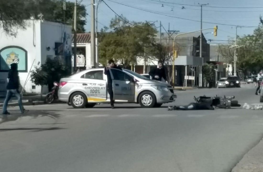 En la esquina, el auto impactó a la moto, provocando que la mujer fuera despedida y sufrió un fuerte golpe en la cabeza, por lo que la trasladaron al Hospital "Dr. Liborio Forte" para su atención.