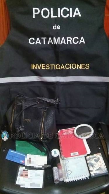 En inmediaciones al barrio Montecristo, procedió al secuestro de una cartera de color negro, que contenía en su interior documentación y elementos varios, propiedad de una mujer de 56 años, quien habría sufrido un arrebato el 4 de julio, en la calle 1° de Mayo, inmediaciones al Club Independiente.