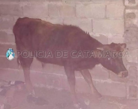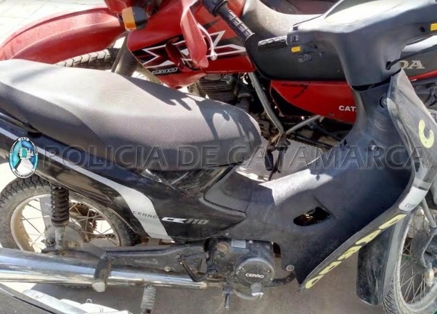 Finalmente, los policías secuestraron una ternera oscura chorreada, una motocicleta Cerro Ce 110 cc., de color negro, dos cuchillas tipo carnicero y una cuerda.