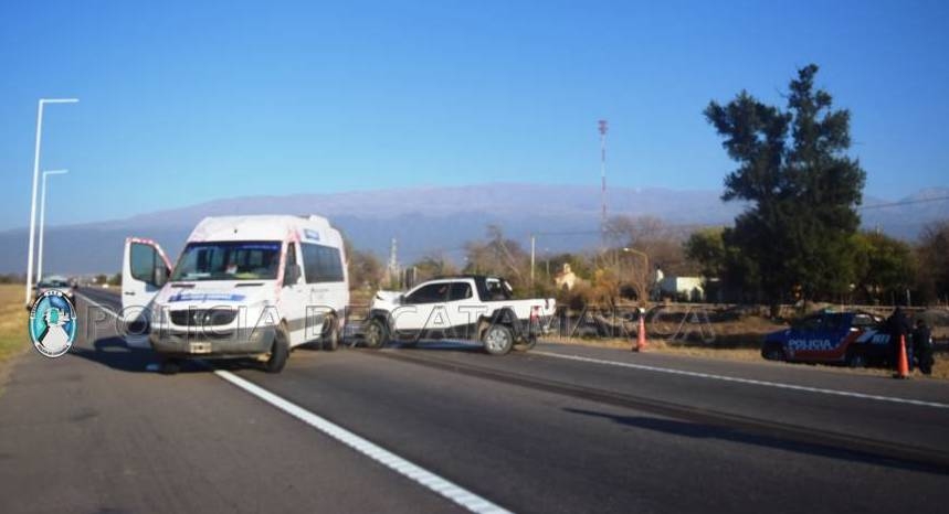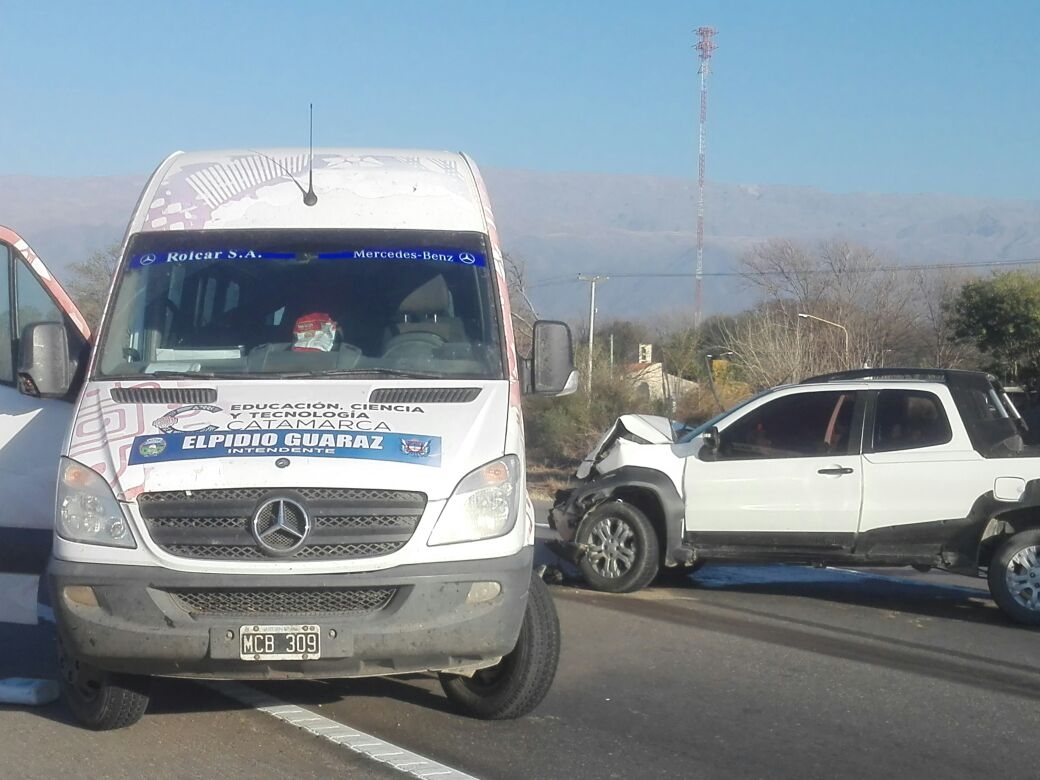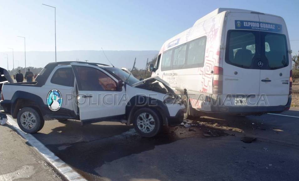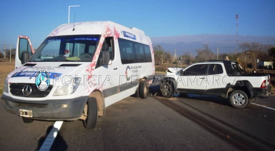 En el lugar, una camioneta Fiat Strada, dominio LMA-613, de color blanco, al mando de Néstor Andrés Ontivero (33), en compañía de Marcelo Daniel Rivera (34) y Walter Edgardo Lencina (38), por causas que son materia de investigación, colisionó con una Combi Mercedes Benz Sprinter 515 CDI blanca, dominio MCB-309, perteneciente a la Municipalidad de Bañado de Ovanta, Dpto. Santa Rosa, conducida por Jorge Luis Juárez (29), que transportaba 18 pasajeros.