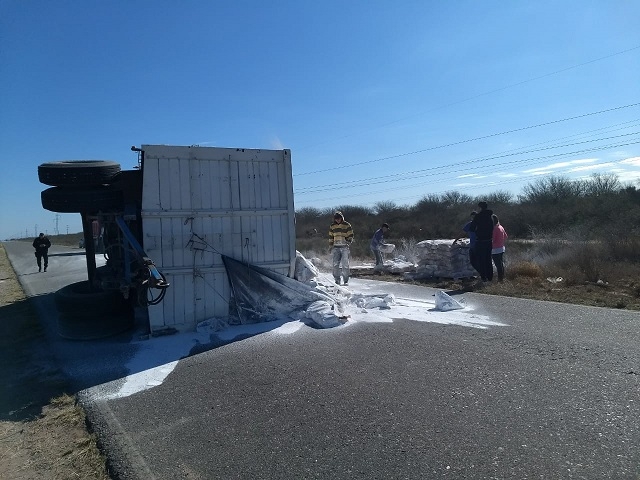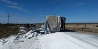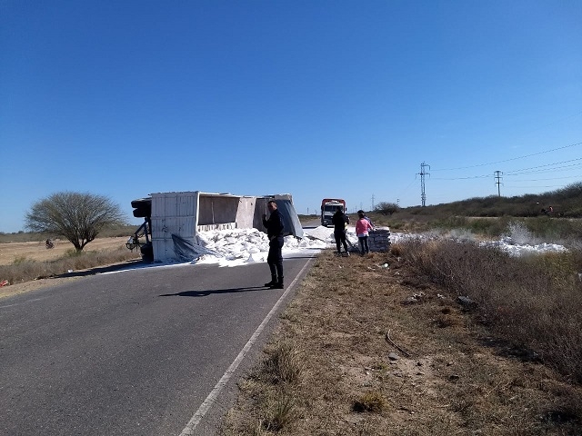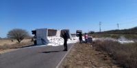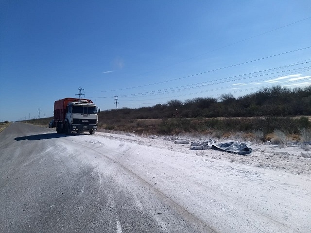 En la tarde de hoy, a las 15:10, en la ruta provincial N° 20, a la altura del ingreso a la Ciudad de Recreo, Dpto. La Paz, se registró un siniestro vial protagonizado por un camión Iveco Max-D, dominio AVC-390, de color blanco, conducido por Maximiliano Elio Márquez (28), oriundo de la Provincia de San Juan, que transportaba cal, y por causas que se tratan de establecer terminó volcando en la banquina.