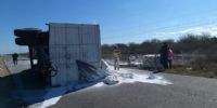 El camión pertenece a la firma Maximiliano Marquez de San Juan. Según el chófer "el acoplado mordió la banquina, y aparentemente se rompió algo". Solo se registraron pérdidas materiales.