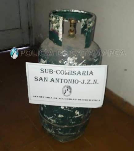 En inmediaciones a un descampado ubicado frente al barrio Bella Vista de esa localidad del departamento Fray Mamerto Esquiú, procedieron al secuestro de garrafa de gas de 15 Kg., de color verde, que se encontraba oculta entre la maleza.